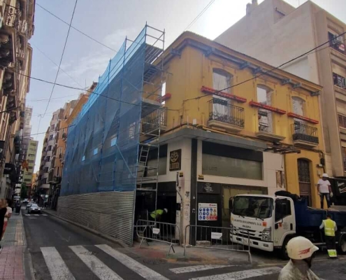 Inmueble situado en el centro de Alicante en pleno centro neurálgico turístico, comercial y de ocio de la ciudad. Junto al puerto deportivo, el casino y la playa del Postiguet, el edificio, actualmente en rehabilitación (conservando la fachada actual) contará finalmente con 5 plantas, añadimos dos, y será destinado a apartamentos turísticos compuestos de salón comedor cocina, uno o dos dormitorios y un baño.